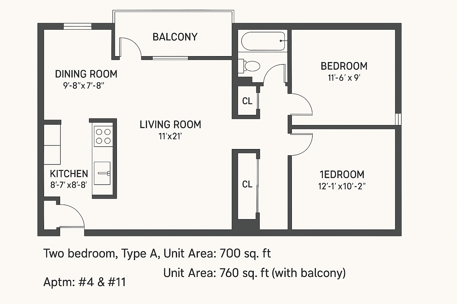 2 Bedroom - Over 700 Sqft Floor Plans