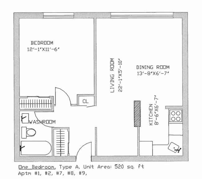 1 Bedroom - 520 Sqft! Floor Plans
