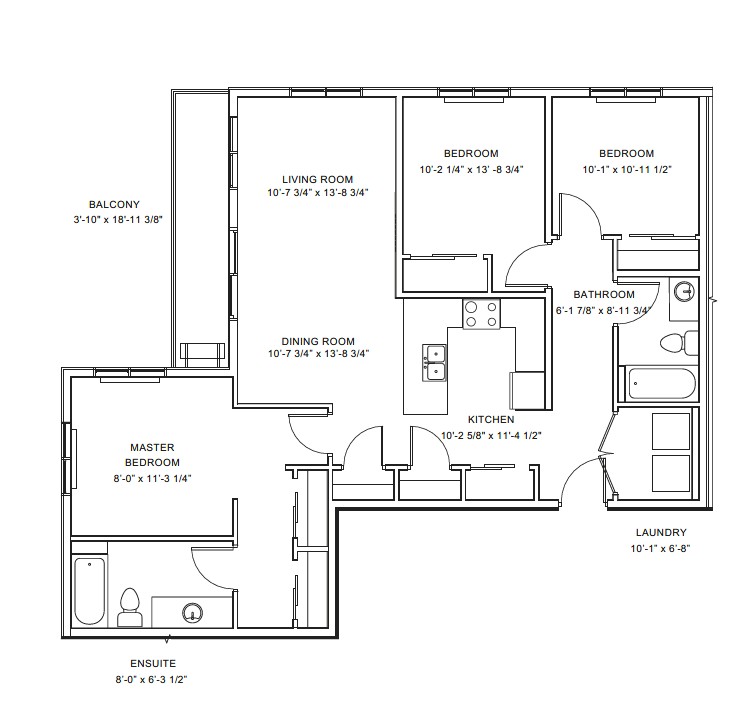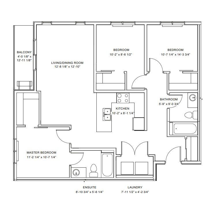 101 - 3 Bedroom (1043 sq.ft) Floor Plans