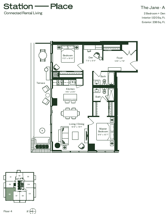 2408-2 Bedroom + Den (Over 1100 sq.ft.) (The Jane) Floor Plans