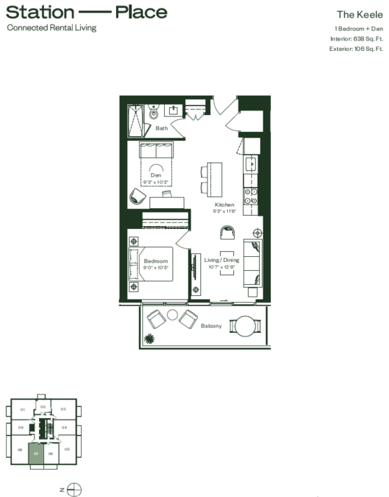 907 -1 Bedroom + Den (The Keele) Floor Plans